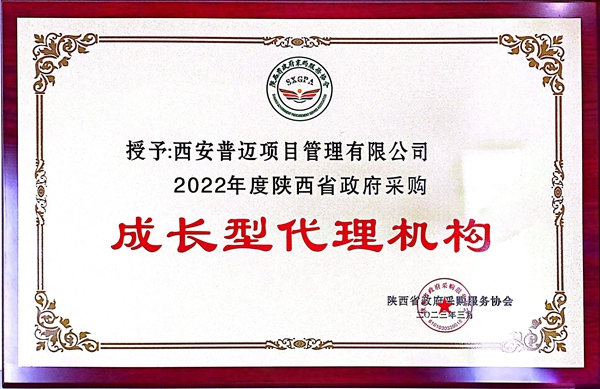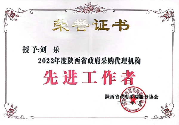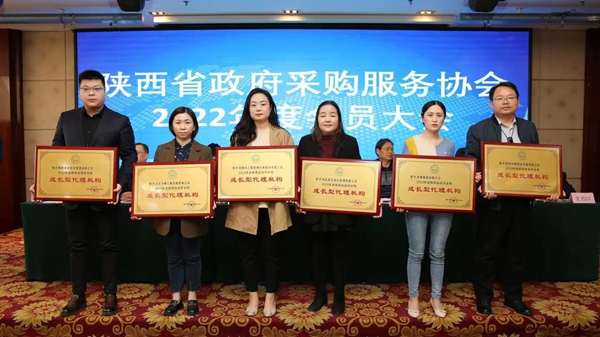 2023年3月29日上午,陜西省政府采購服務協(xié)會召開“2022年度會員大會暨第一屆理事會第三次會員大會”,大會對10名“十佳”代理機構和15名“成長型”代理機構,49名政采代理機構先進工作者進行了表彰。公司獲評“2022年度陜西省政府采購‘成長型’代理機構”,公司員工劉樂獲評2022年度陜西省政府采購代理機構先進工作者。