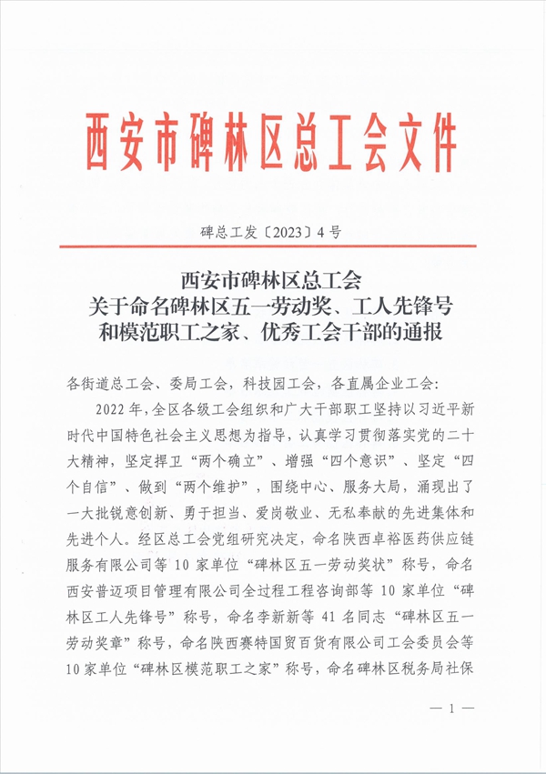 活動(dòng)現(xiàn)場(chǎng),碑林區(qū)總工會(huì)對(duì)一批在全區(qū)經(jīng)濟(jì)和社會(huì)發(fā)展中作出突出貢獻(xiàn)的先進(jìn)集體和先進(jìn)個(gè)人進(jìn)行了命名及表彰。公司全過(guò)程工程咨詢部榮獲“碑林區(qū)工人先鋒號(hào)”榮譽(yù)稱號(hào)。