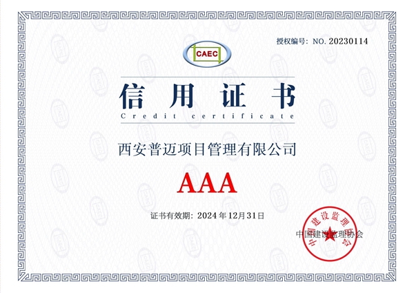 2023年6月12日,中國建設(shè)監(jiān)理協(xié)會印發(fā)《中國建設(shè)監(jiān)理協(xié)會關(guān)于公布單位會員信用評估結(jié)果(第一期)的通告》,公布“單位會員信用評估結(jié)果表(第一期)”,西安普邁項目管理有限公司位列其中,獲評AAA級企業(yè)。
