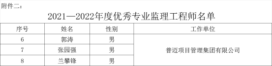 2021-2022年度陜西省優(yōu)秀專業(yè)監(jiān)理工程師