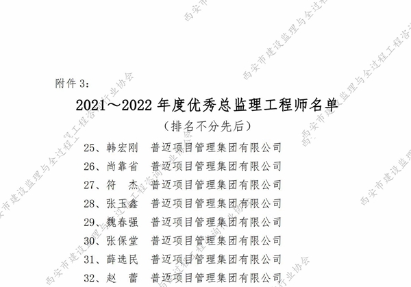 2021-2022年度西安市優(yōu)秀總監(jiān)理工程師
