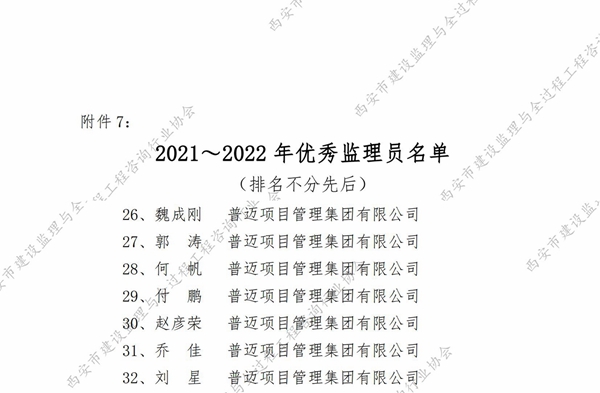 2021-2022年度西安市優(yōu)秀監(jiān)理員