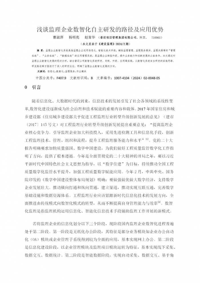 淺談監(jiān)理企業(yè)數(shù)智化自主研發(fā)的路徑及應(yīng)用優(yōu)勢
