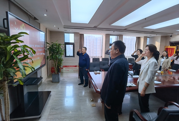 “我志愿加入中國(guó)共產(chǎn)黨,擁護(hù)黨的綱領(lǐng),遵守黨的章程,履行黨員義務(wù),執(zhí)行黨的決定……隨時(shí)準(zhǔn)備為黨和人民犧牲一切,永不叛黨?!敝Р看髸?huì)最后,參會(huì)黨員全體起立,莊嚴(yán)地舉起右手,在支部書記李三虎的領(lǐng)誓下共同宣誓,重溫入黨誓詞,再一次用錚錚誓言詮釋入黨初心,砥礪奮斗精神。