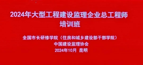 為學(xué)習(xí)貫徹黨的二十屆三中全會精神,深入實施人才強(qiáng)國戰(zhàn)略,促進(jìn)高端專業(yè)技術(shù)人員技術(shù)交流與知識更新,加快推進(jìn)行業(yè)卓越工程師培養(yǎng),助力住房城鄉(xiāng)建設(shè)事業(yè)高質(zhì)量發(fā)展,全國市長研修學(xué)院(住房和城鄉(xiāng)建設(shè)部干部學(xué)院)和中國建設(shè)監(jiān)理協(xié)會于2024年10月29日至11月1日,在昆明聯(lián)合舉辦了“2024年大型工程建設(shè)監(jiān)理企業(yè)總工程師培訓(xùn)班”。公司副總經(jīng)理、總工程師王永軍參加了此次培訓(xùn)。