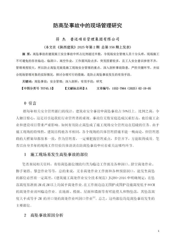 防高墜事故中的現(xiàn)場管理研究