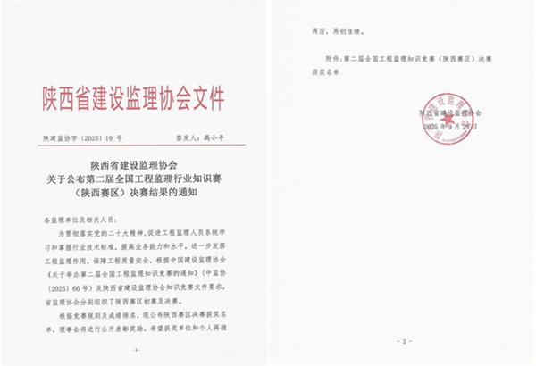 2025年9月29日,陜西省建設監(jiān)理協(xié)會公布了第二屆全國監(jiān)理行業(yè)知識競賽(陜西賽區(qū))決賽結(jié)果,普邁項目管理集團有限公司榮獲優(yōu)勝企業(yè)獎,5名參賽員工取得優(yōu)異成績,光榮上榜!