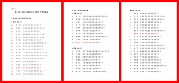 第二屆全國工程監(jiān)理知識競賽獲獎名單公布!普邁榮獲優(yōu)勝單位特別獎!李安忠、曹小平、惠曉剛三位同志斬獲佳績!