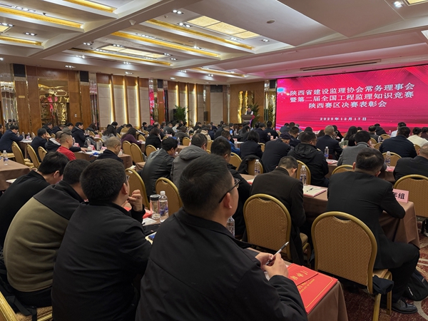 2025年12月17日上午,陜西省建設監(jiān)理協(xié)會在西安古都文化大酒店召開常務理事會暨第二屆全國工程監(jiān)理知識競賽陜西賽區(qū)決賽表彰會議。100多人參加了會議,會議由省協(xié)會秘書長郭紅梅主持。公司董事長兼總經(jīng)理景亞杰,名譽董事長、顧問李三虎,副總經(jīng)理任瑩及李安忠、曹小平、楊明亮、明振、惠曉剛等獲獎同志參會。