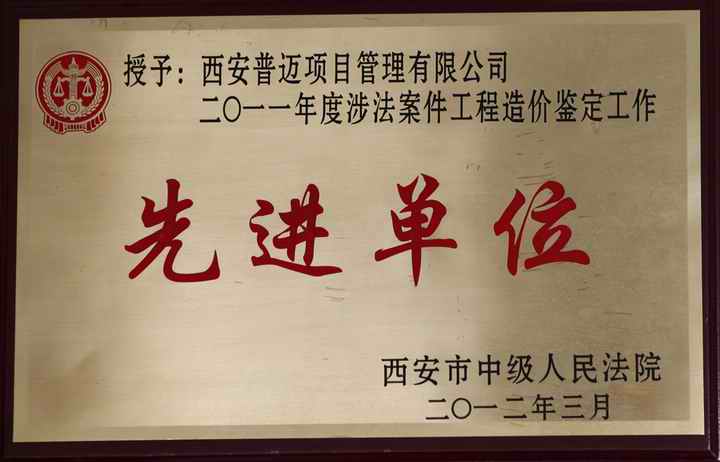 2011年涉法案件工程造價鑒定工作先進單位