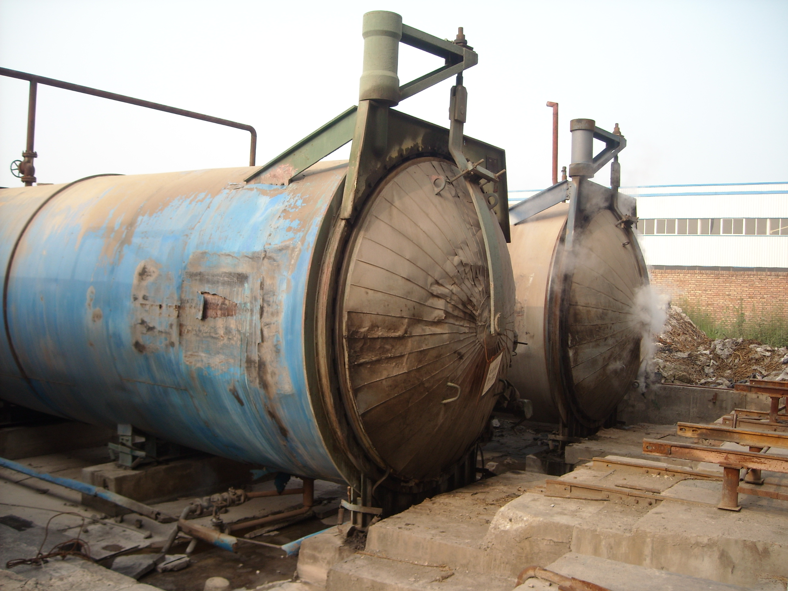 9.壓力釜二級(jí)蒸養(yǎng)實(shí)況                                                                           10.經(jīng)壓力釜二級(jí)蒸養(yǎng)出釜的成品樁