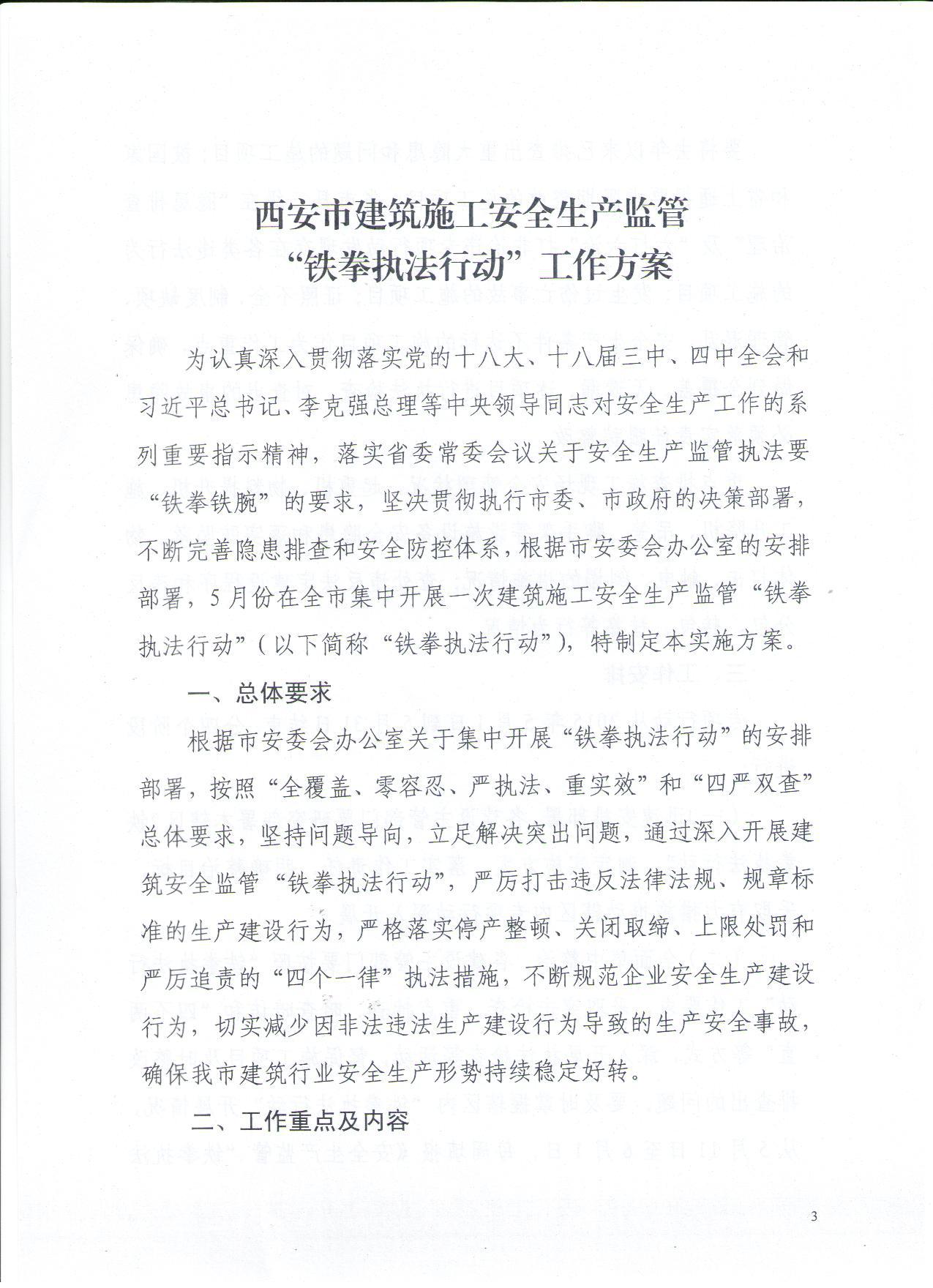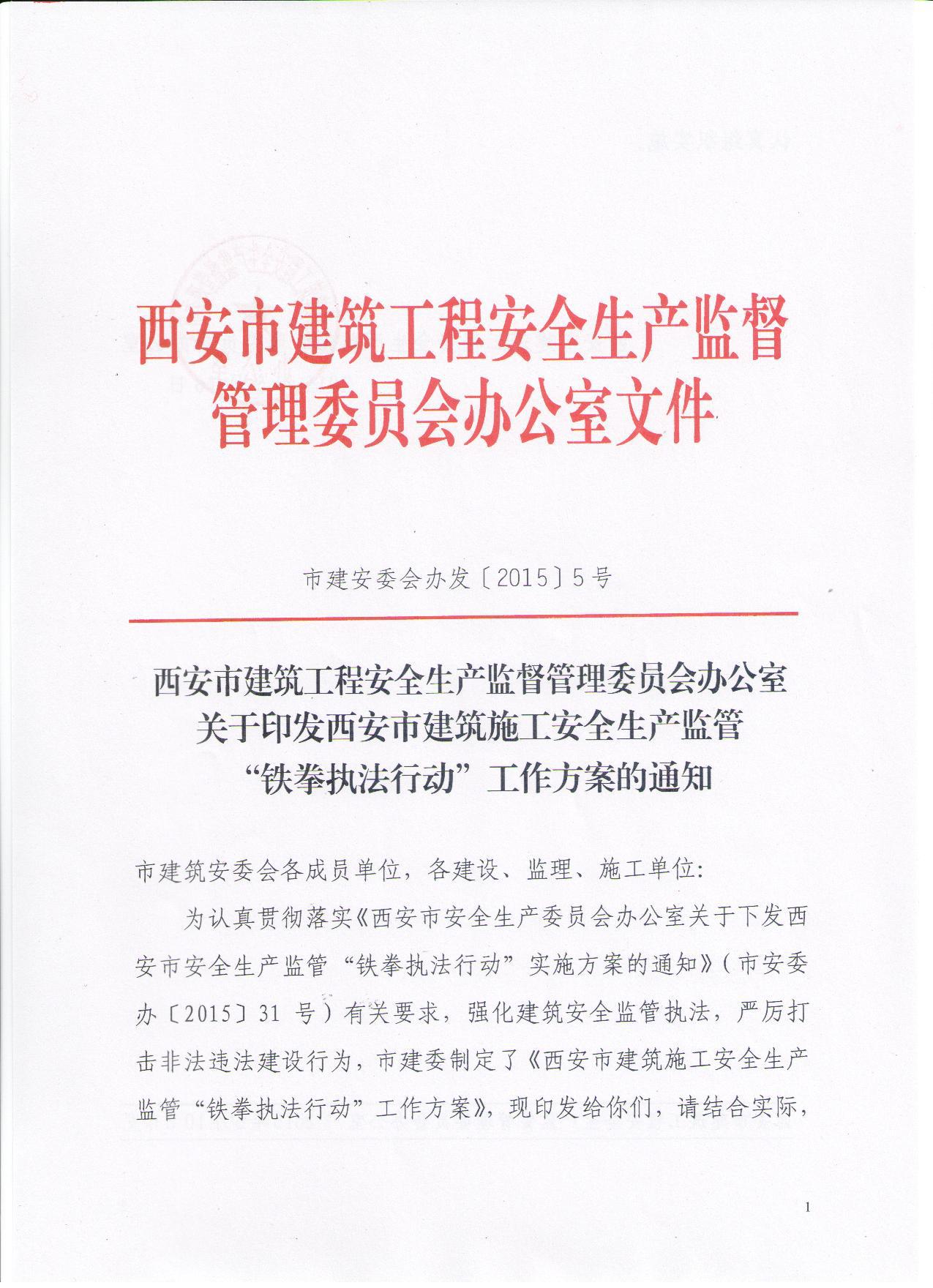 市建安委會辦發(fā)[2015]5號關(guān)于印發(fā)西安市建筑施工安全生產(chǎn)監(jiān)管“鐵拳執(zhí)法行動”工作方案的通知