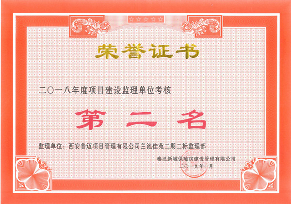 秦漢新城蘭池佳苑二期二標(biāo)榮獲第二名