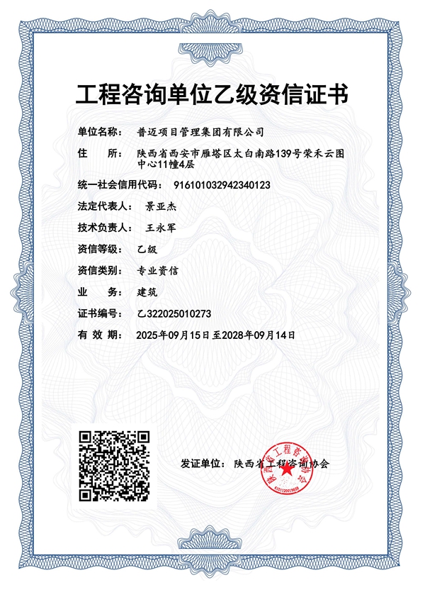 工程咨詢單位乙級(jí)資信證書(shū)