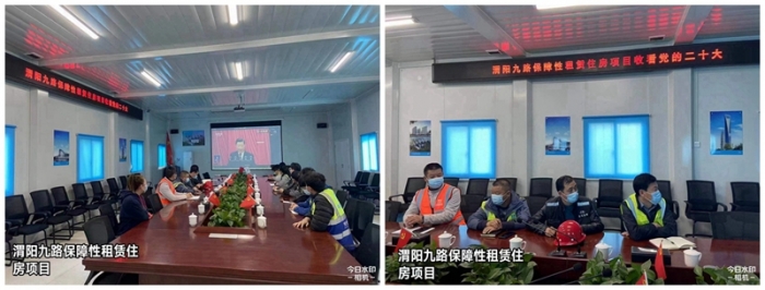 渭陽九路保障性租賃住房項目監(jiān)理部在監(jiān)理辦公室集中收看二十大開幕會