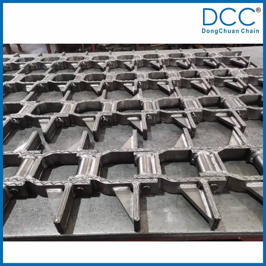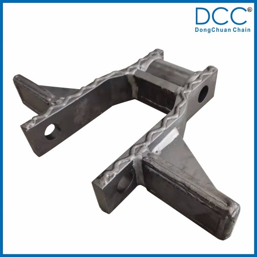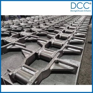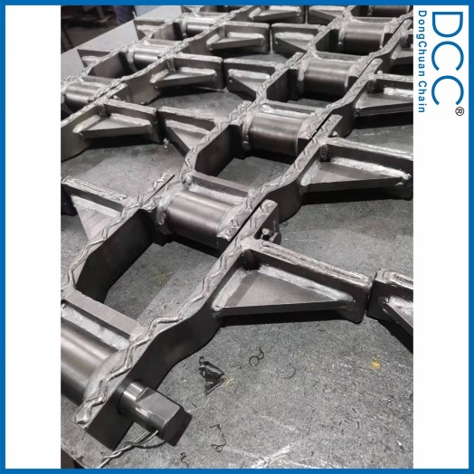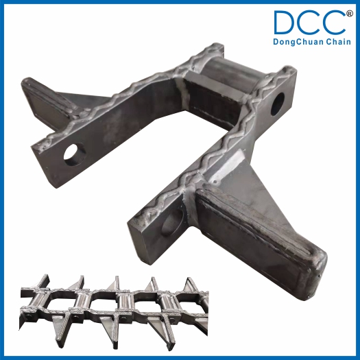 鏈條的刮板與鏈板焊接后又增加了一塊加強(qiáng)板,大大提高了刮板與鏈板的焊接強(qiáng)度,在鏈條的使用過(guò)程中,能使刮板長(zhǎng)期承受較高的沖擊載荷而不脫焊。