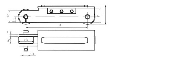 Chain no. | Pitch P1(mm) | Diameter of roller d1(mm) | Diameter of pin d2(mm) | Inner width of inner link b1(mm) | Length of pin L(mm) | Data of sidebar | Tensile strength Q(KN) | |||