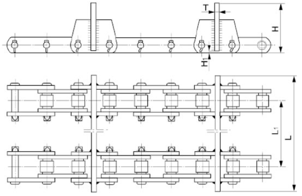 鏈 號 | T (mm) | H (mm) | H1 (mm) | L (mm) | L1 (mm) |