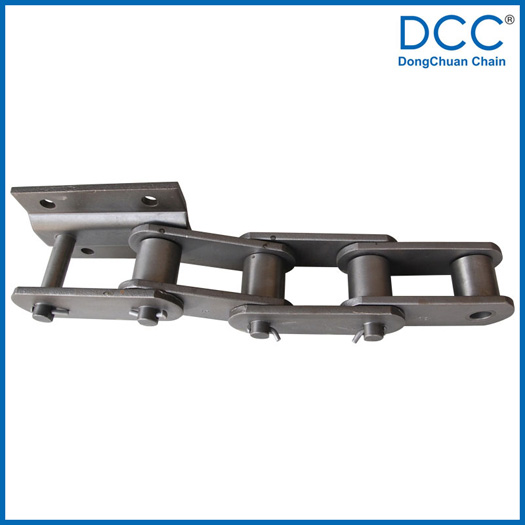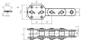 Chain No. | Pitch P (mm) | Inner width of inner link W (mm) | Diameter of roller D (mm) | Sidebar | Pin | Dimension of attachment | Tensile strength(KN) | |||||