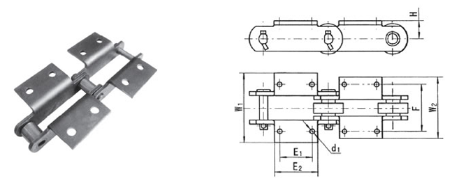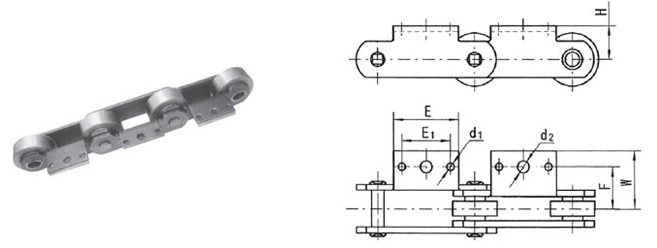 Matching chain no. | H(mm) | E1(mm) | E(mm) | d1(mm) | d2(mm) | F(mm) | W(mm) |